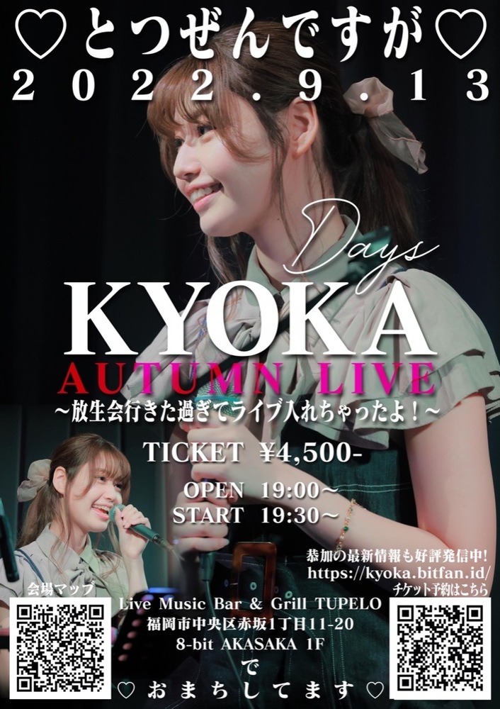 恭加AutumnLIVE in FUKUOKA SCHEDULE 2022/09/13(火) 19:00 - https://tupelokusaongaku.jimdofree.com URLをコピーする 報告する
